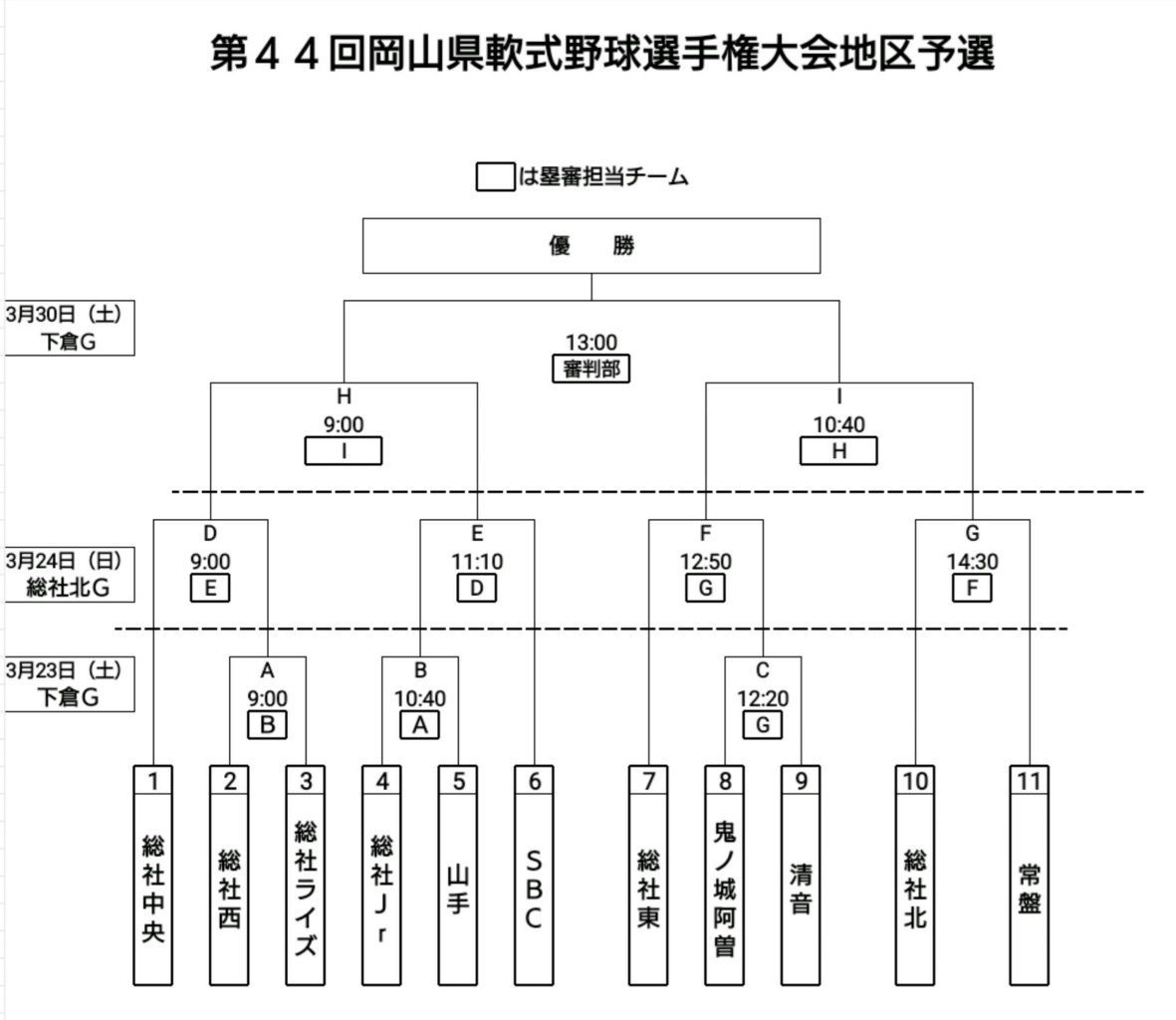 3月23日(土)から第44回岡山県軟式野球選手権大会地区予選が開催されます。