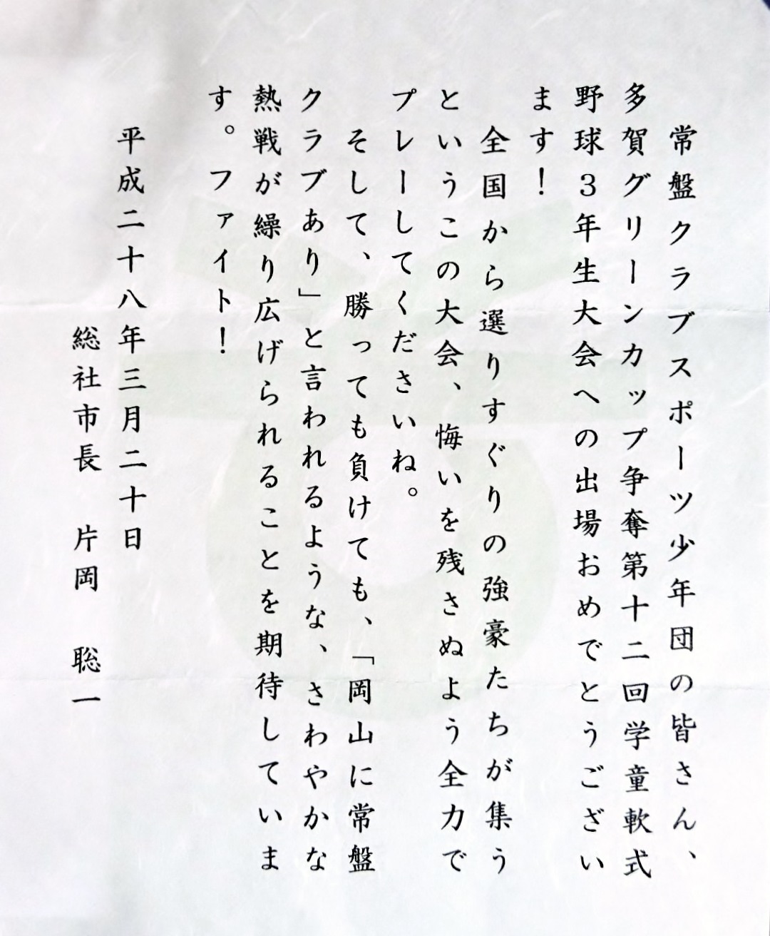 選手のみんなも多賀グリーンカップに向けて周囲から激励の言葉を