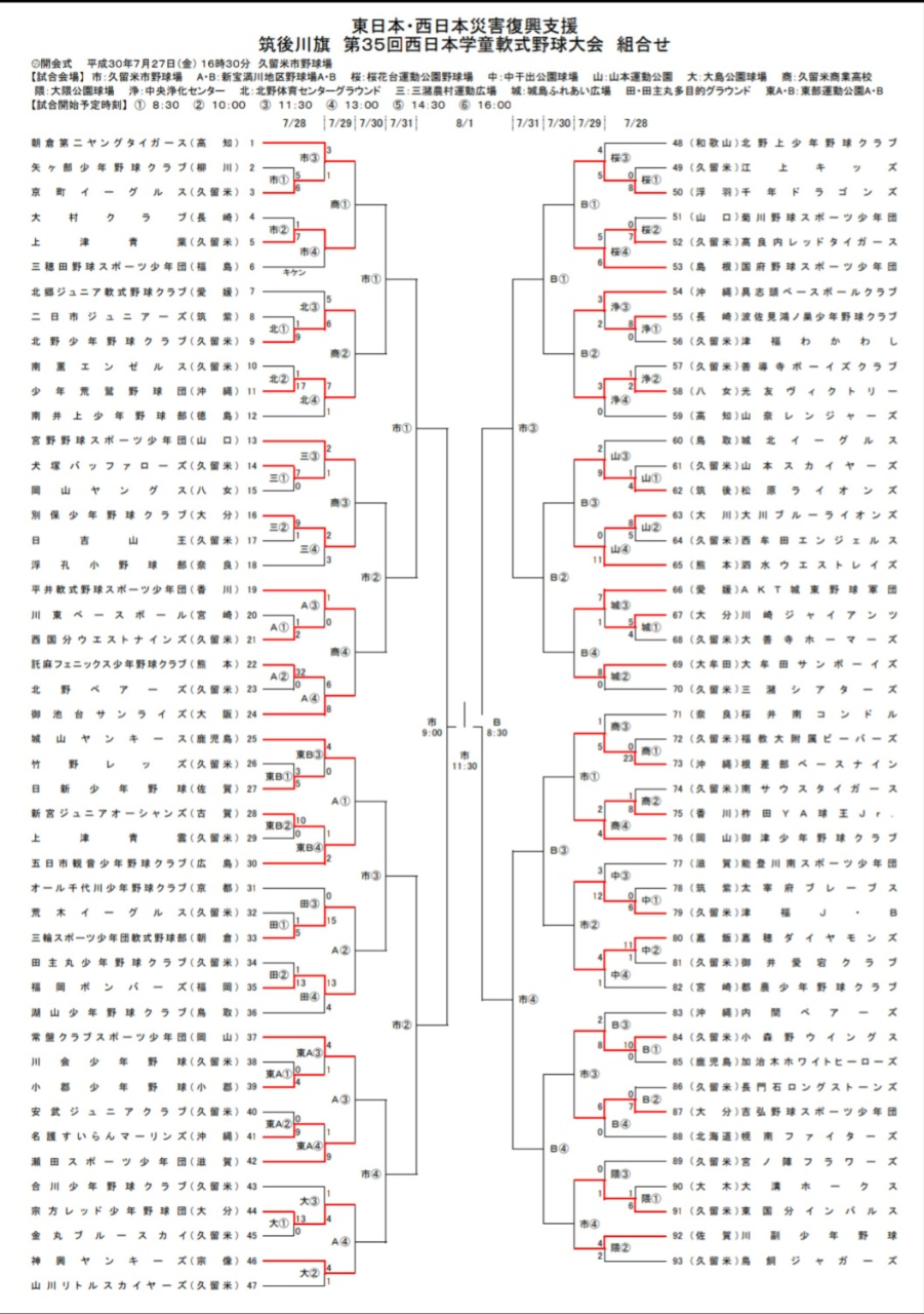 この大会は先日発生した豪雨による影響により中止となった竹野杯の代替え大会として開催されます。