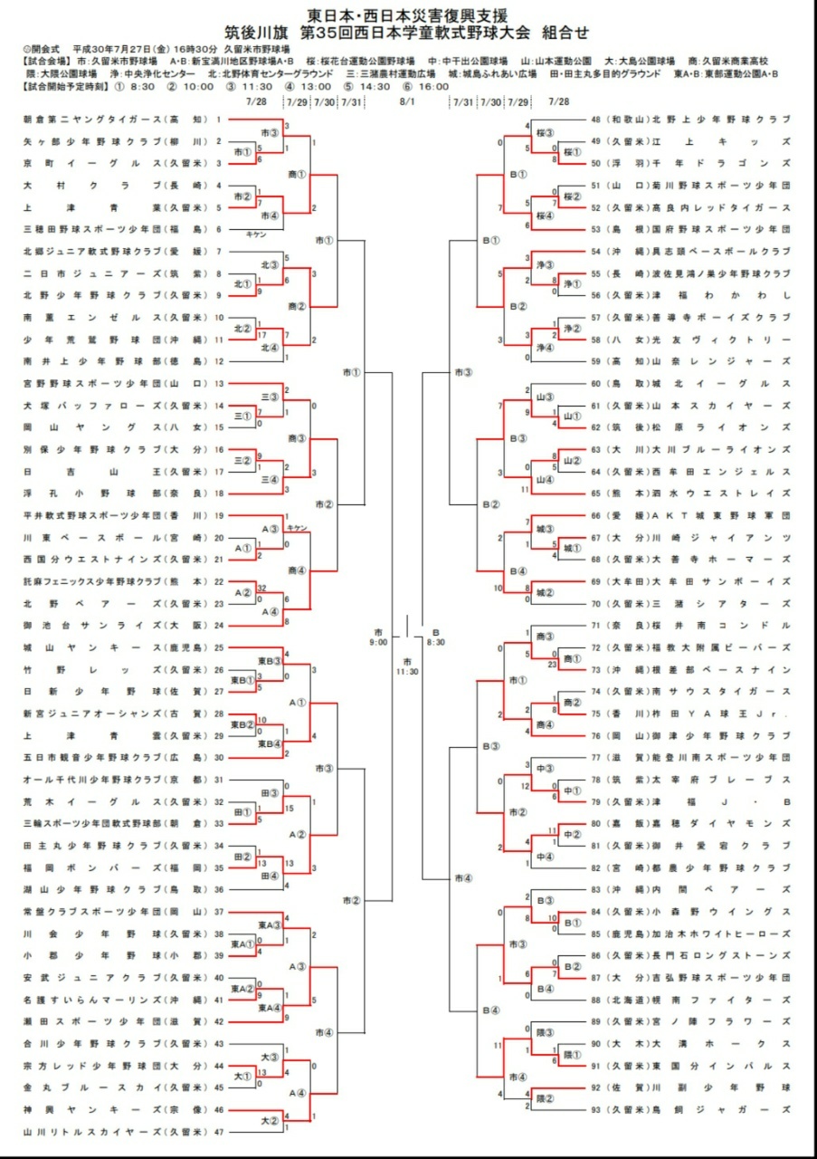 昨日開幕した第35回筑後川旗西日本学童軟式野球大会ですが本日よりトーナメント戦が始まりました。
