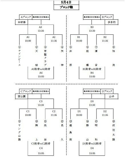 ブロック代表チームは以下の4チーム