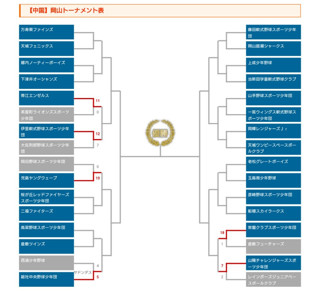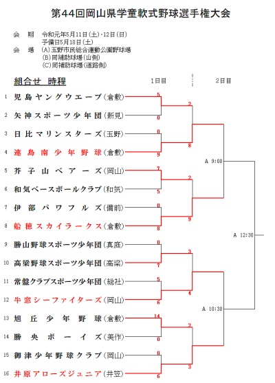 5月11日に行われました第44回岡山県学童軟式野球選手権大会の結果です。