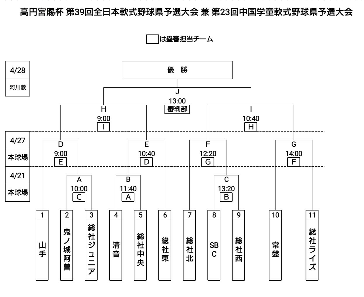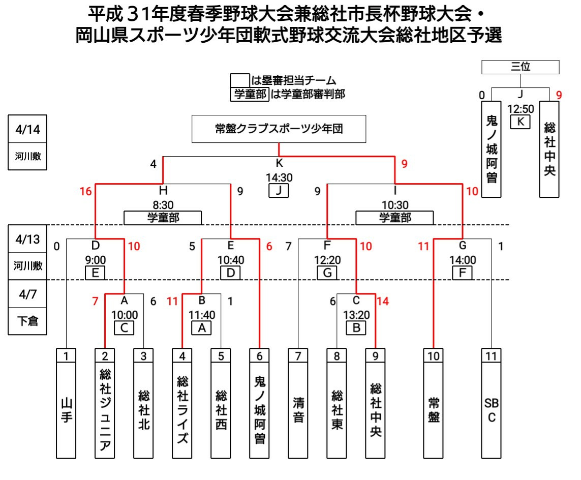 先週から始まった平成31年度春季野球大会兼総社市長杯野球大会・岡山県スポーツ少年団軟式野球交流大会総社地区予選が終了しました。