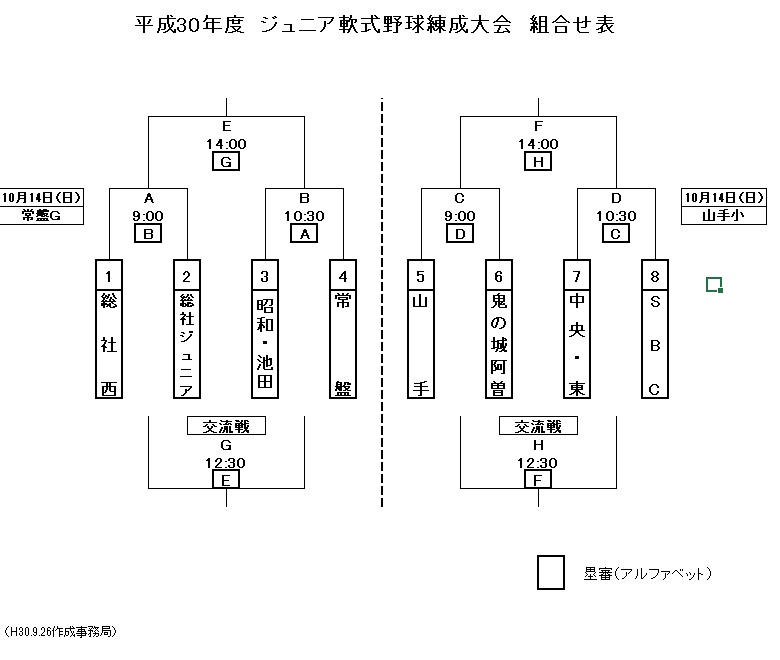 10月14日(日)常盤分館グラウンドと山手小学校を会場に平成30年度ジュニア軟式野球錬成大会が開催されます。