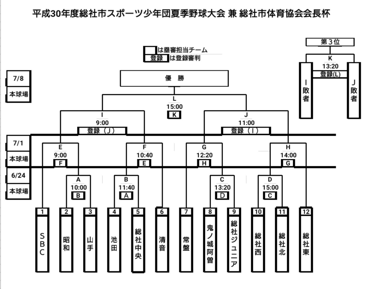 6月24日(日)から平成30年度総社市スポーツ少年団夏季野球大会兼総社市体育協会会長杯が開催されます。