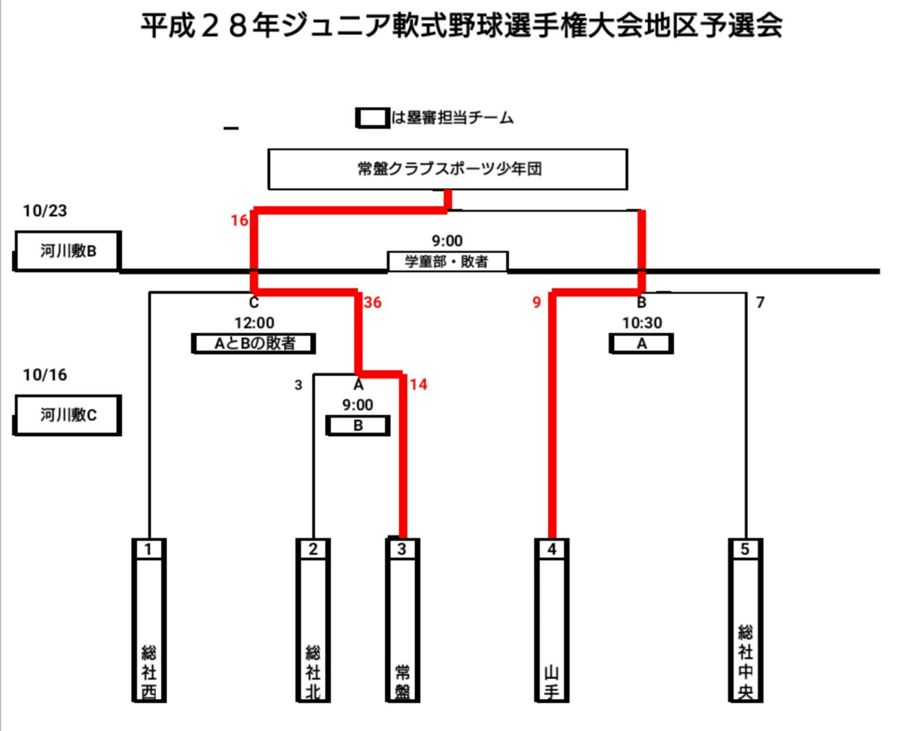 常盤クラブのブロックは城北ヒーローズ、四福少年野球、常盤クラブの3チーム。