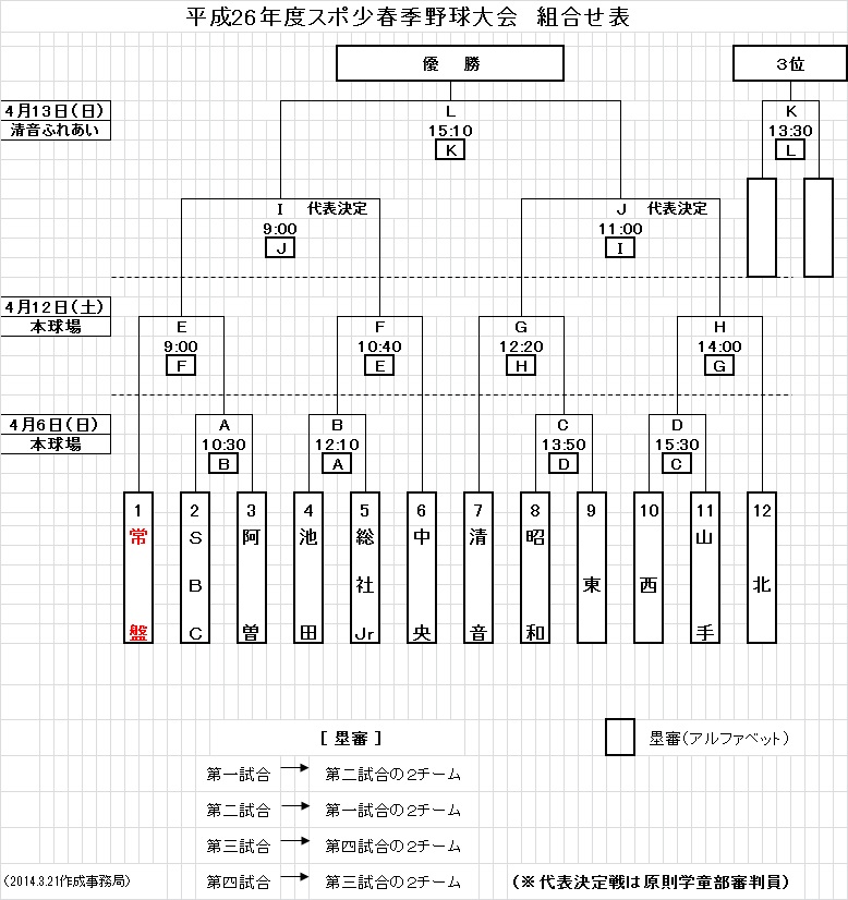 2014・4.25に開幕する高円宮賜杯総社地区予選の組み合わせが決まりました。