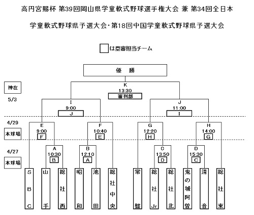 前回の春季大会につづいてのシード枠。総社ジュニアvs総社北の勝者との対戦は4/29(火)の第三試合